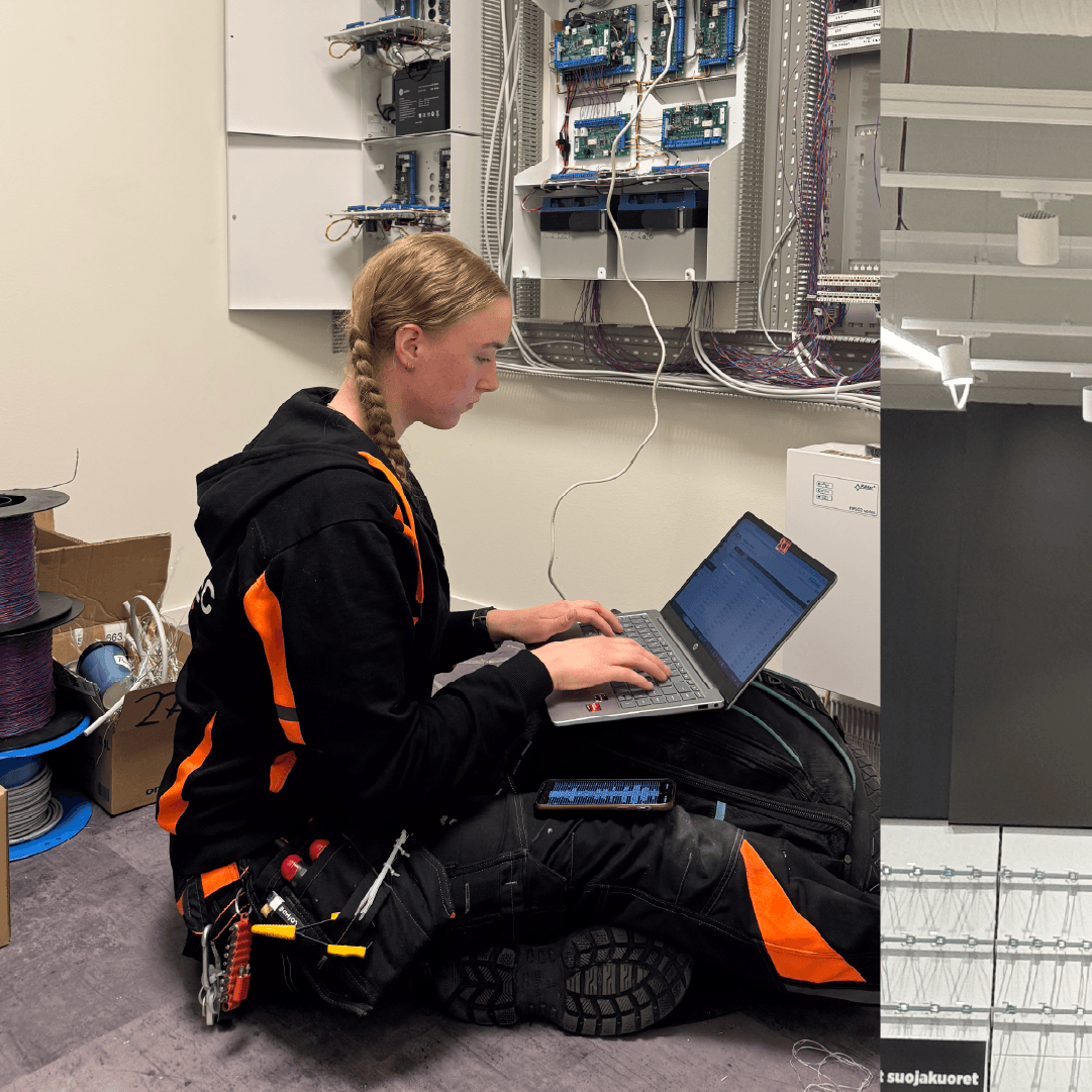 Tekniker Emma i arbeid med montasje hos Power Lahti